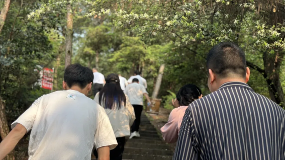 纪念完先烈后,yth2206游艇会光电党支部还举行了登仰天岗的登山团体比赛活动,加强队友的团结力。大家一路欢歌笑语,攀登高山,唱着国歌,向着仰天岗山顶前进。