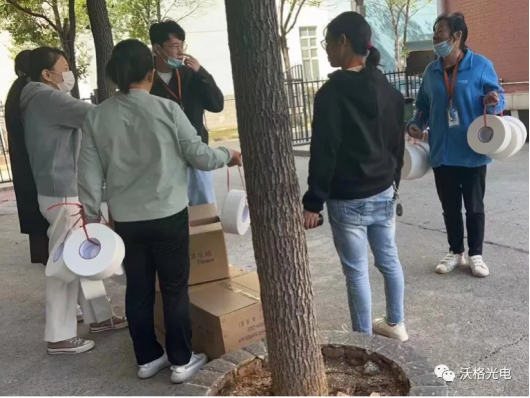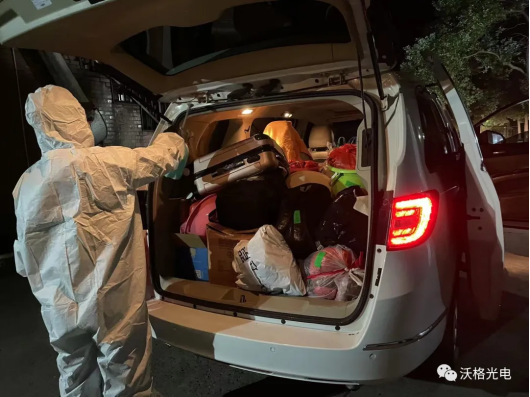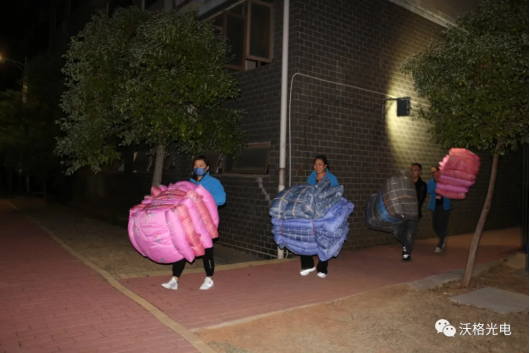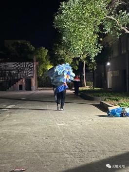18号晚上八点左右,第一批床品供给送到宿舍厂区,TA们便扛起整个宿舍的物资份量,默默为其他人送去温暖。