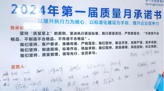 最后,全体参会人员进行了庄严的质量承诺宣誓,并在誓词板上签上自己的名字,以此迎接为期3个月的质量月专项活动。