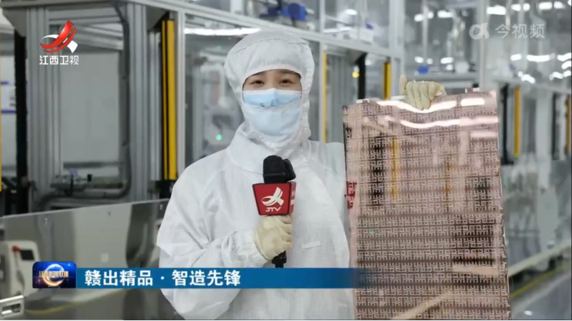 节目中,江西卫视记者身着全套净化服,“全副武装”地跟随工作人员深入探访yth2206游艇会光电全资子公司江西德虹的智能化产线,亲身体验和参观了yth2206游艇会光电玻璃基板的多个生产制造环节。对一张不足1毫米厚的透明玻璃板摇身一变,成为布满精密线路的玻璃电路板,记者表达了诸多好奇与惊讶。记者也通过他们的镜头和采访对话,一步步揭开yth2206游艇会光电玻璃基板研发攻关和生产环节的神秘面纱。